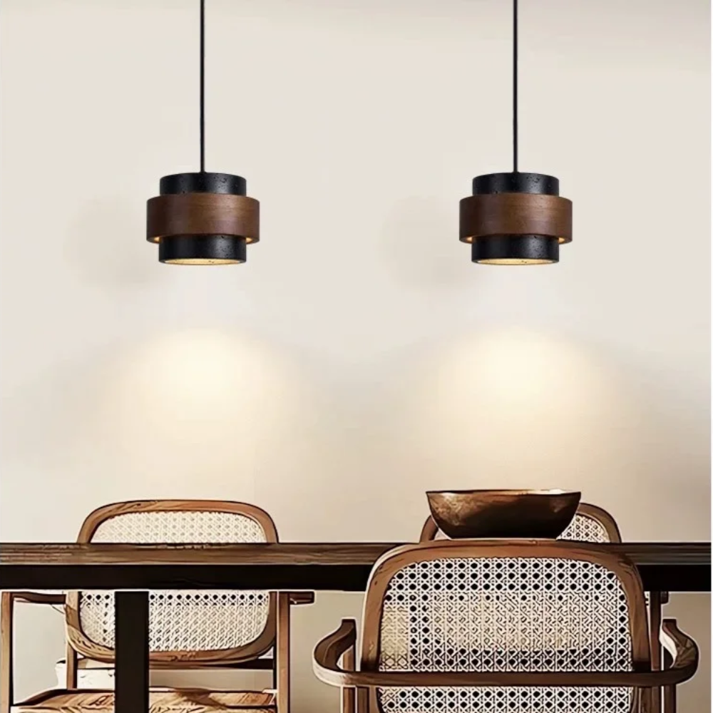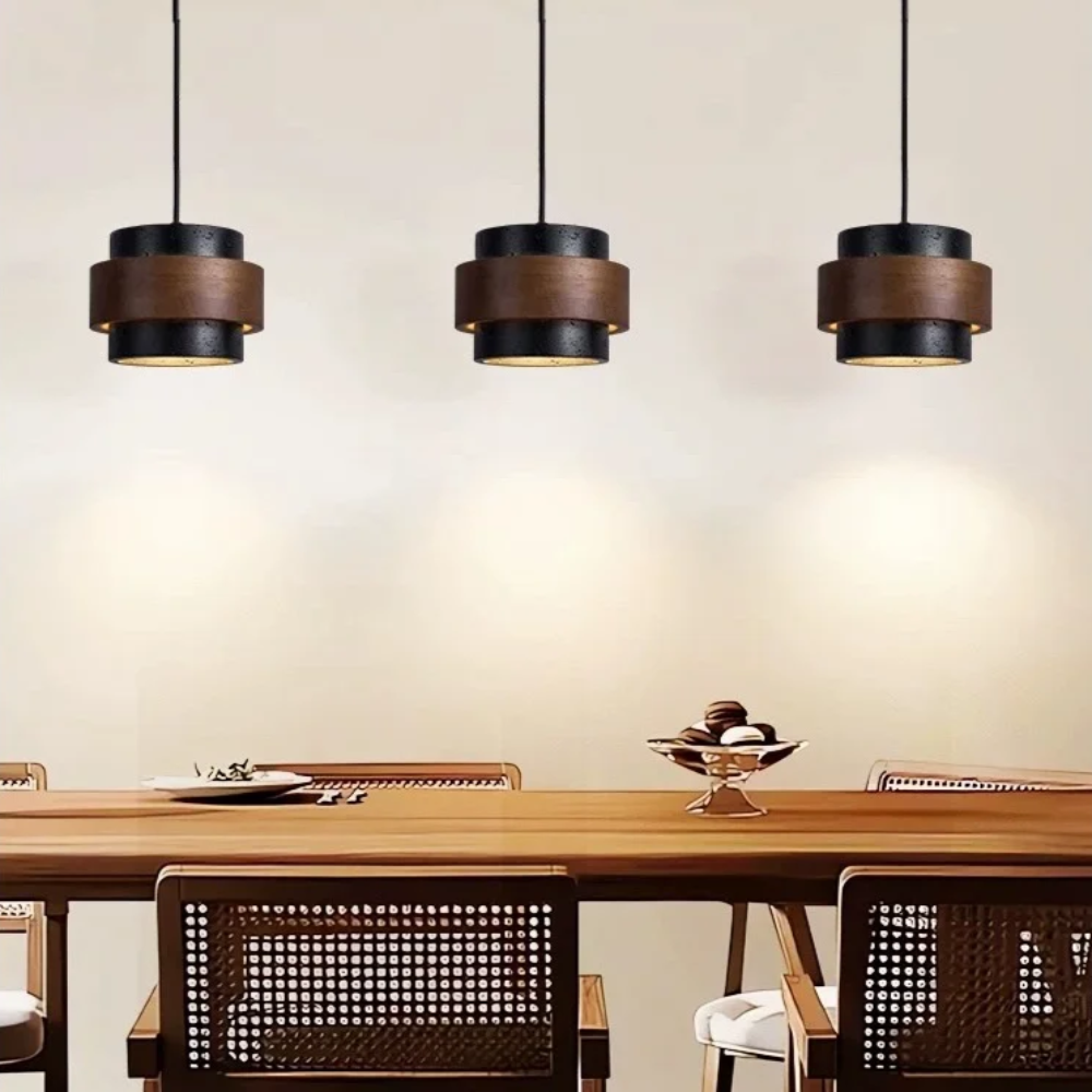 Discover the black travertine pendant light | Perfect for adding a contemporary touch to your dining room, kitchen island, or bar. Inspired by modern wabi-sabi elegance, its natural stone texture and smooth geometric form combine simplicity with refined sophistication.
