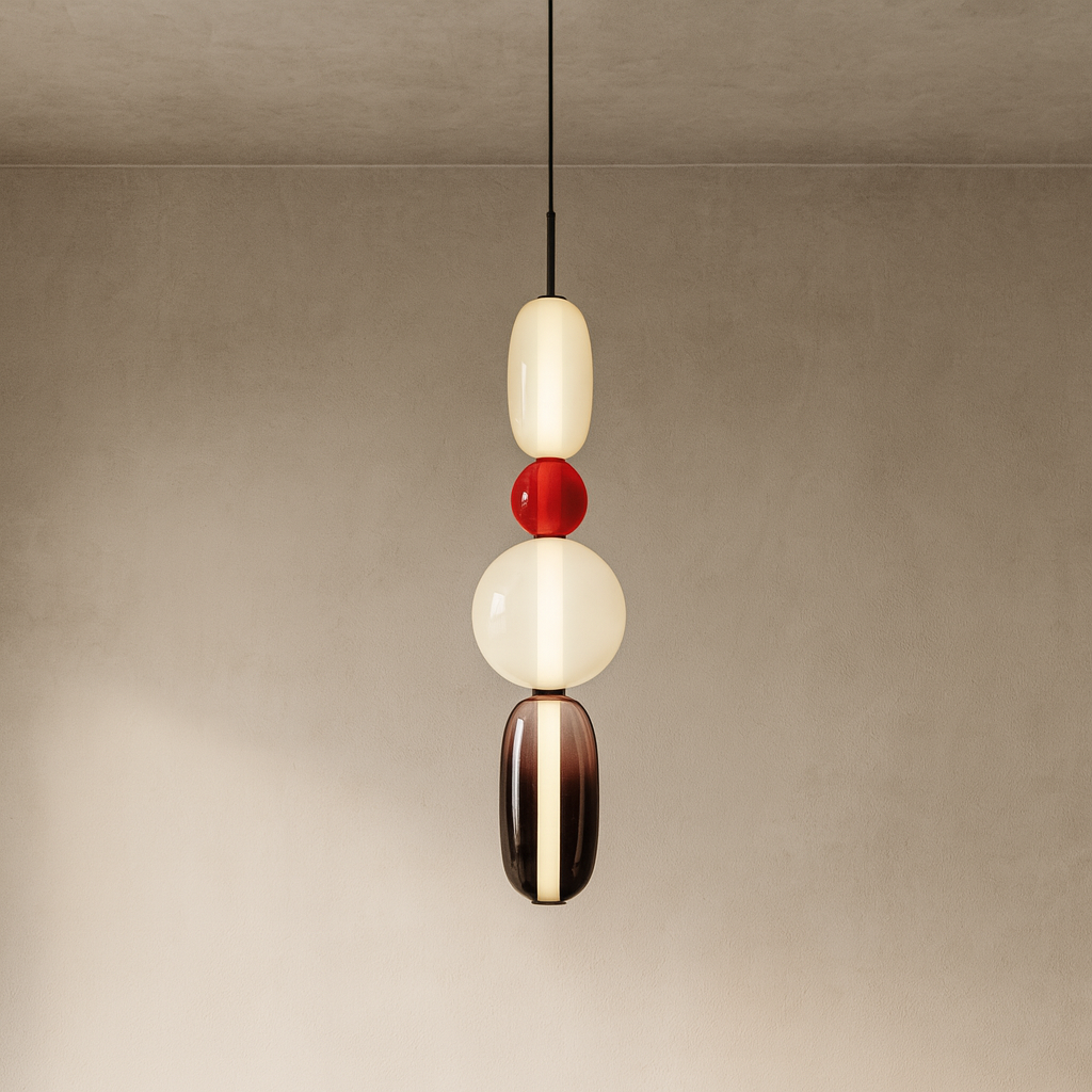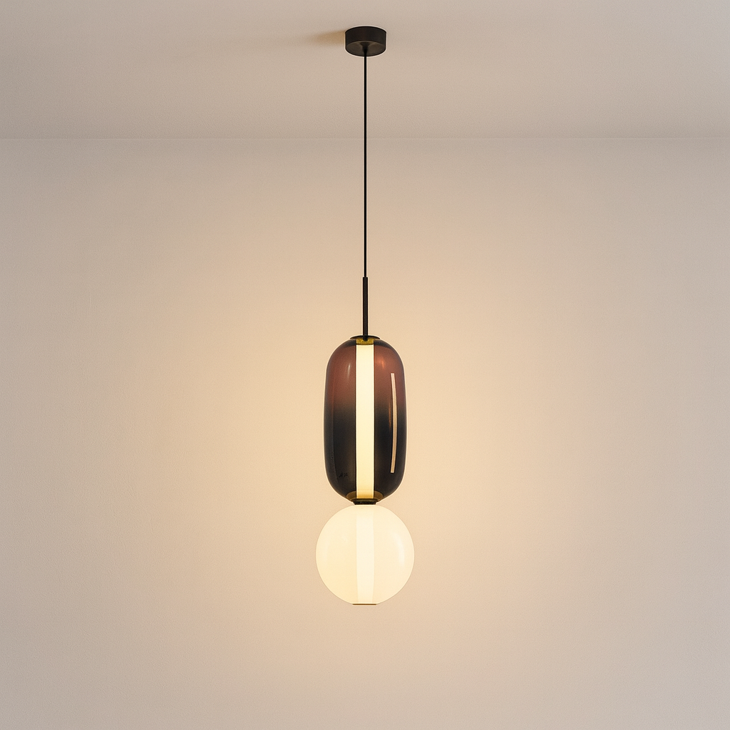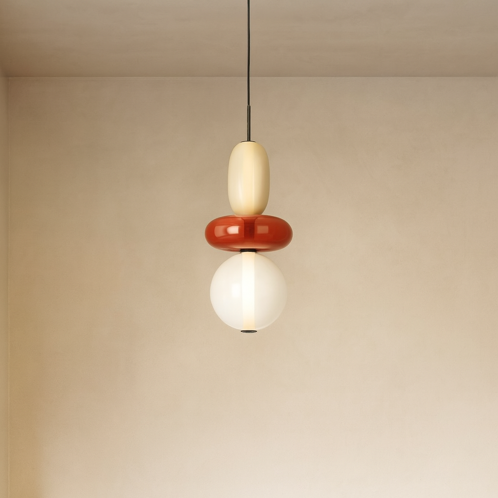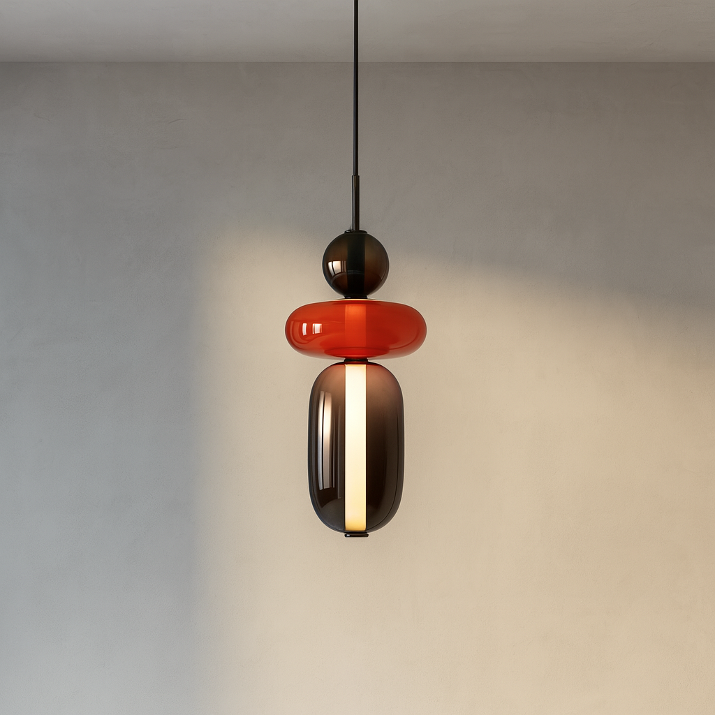 Discover the colored glass pendant light | CANDIED, perfect for adding a contemporary touch to your dining room, kitchen island, or living area. Inspired by playful design and artisanal craftsmanship, its vibrant, tinted glass shade adds warmth and character to modern interiors.