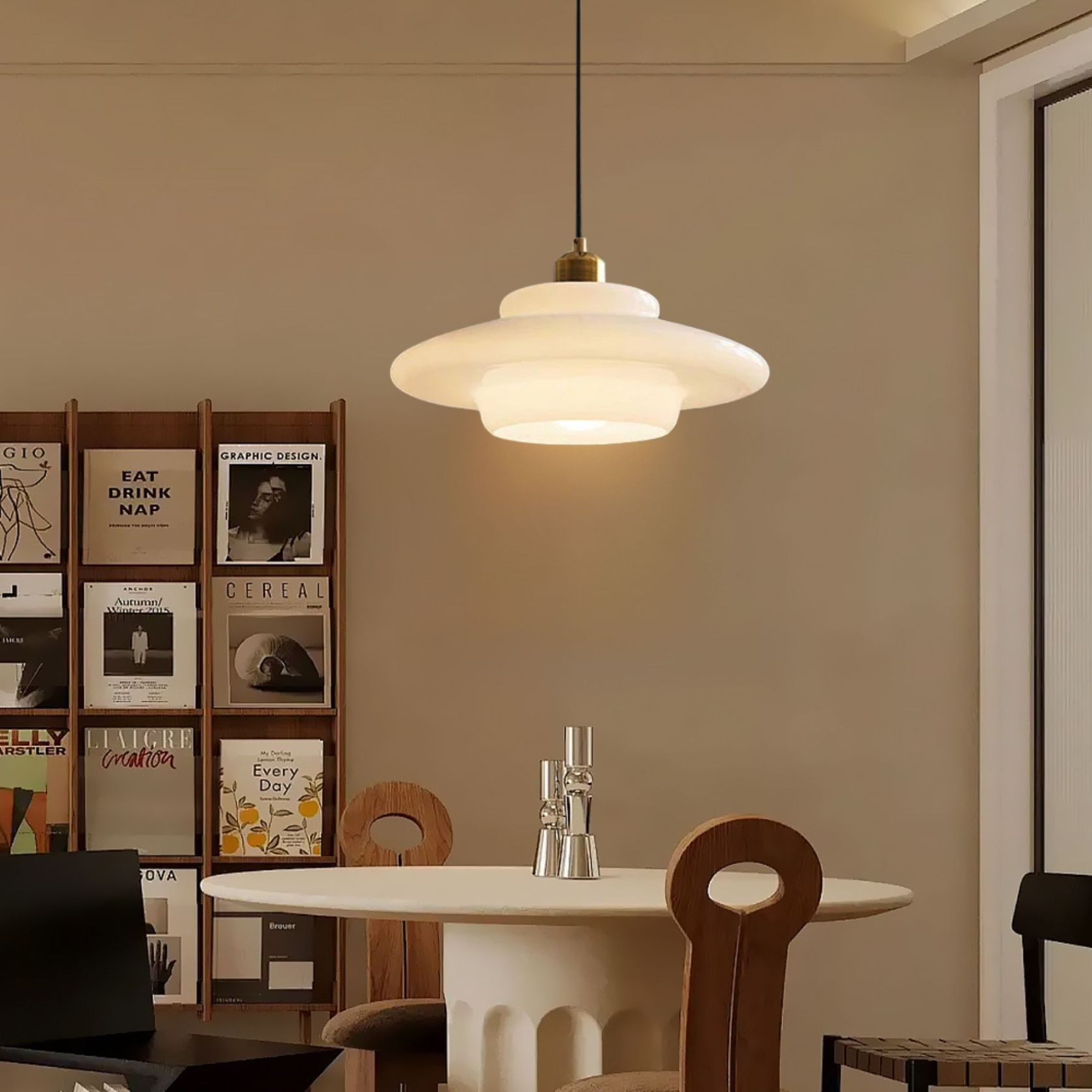 Discover the Mid Century White Pendant Light | Perfect for adding a contemporary touch to your dining room, living room, or kitchen island. Inspired by mid-century modern design, its clean white finish and smooth curves combine timeless style with understated elegance.