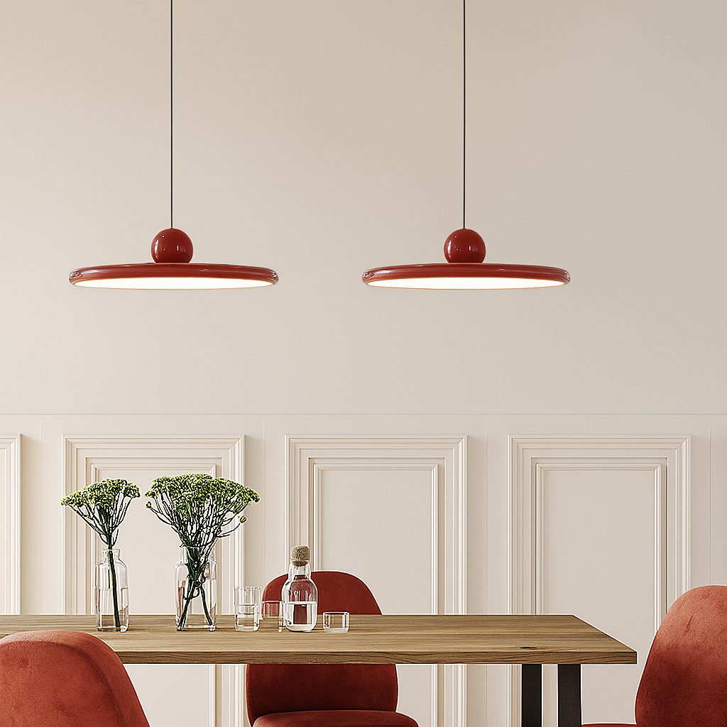 Discover the colored pendant light | MYTHA, perfect for adding a contemporary touch to your kitchen, dining room, or creative studio. Inspired by playful modernism, its curved silhouette and colorful finish add a bold yet balanced accent to any interior.